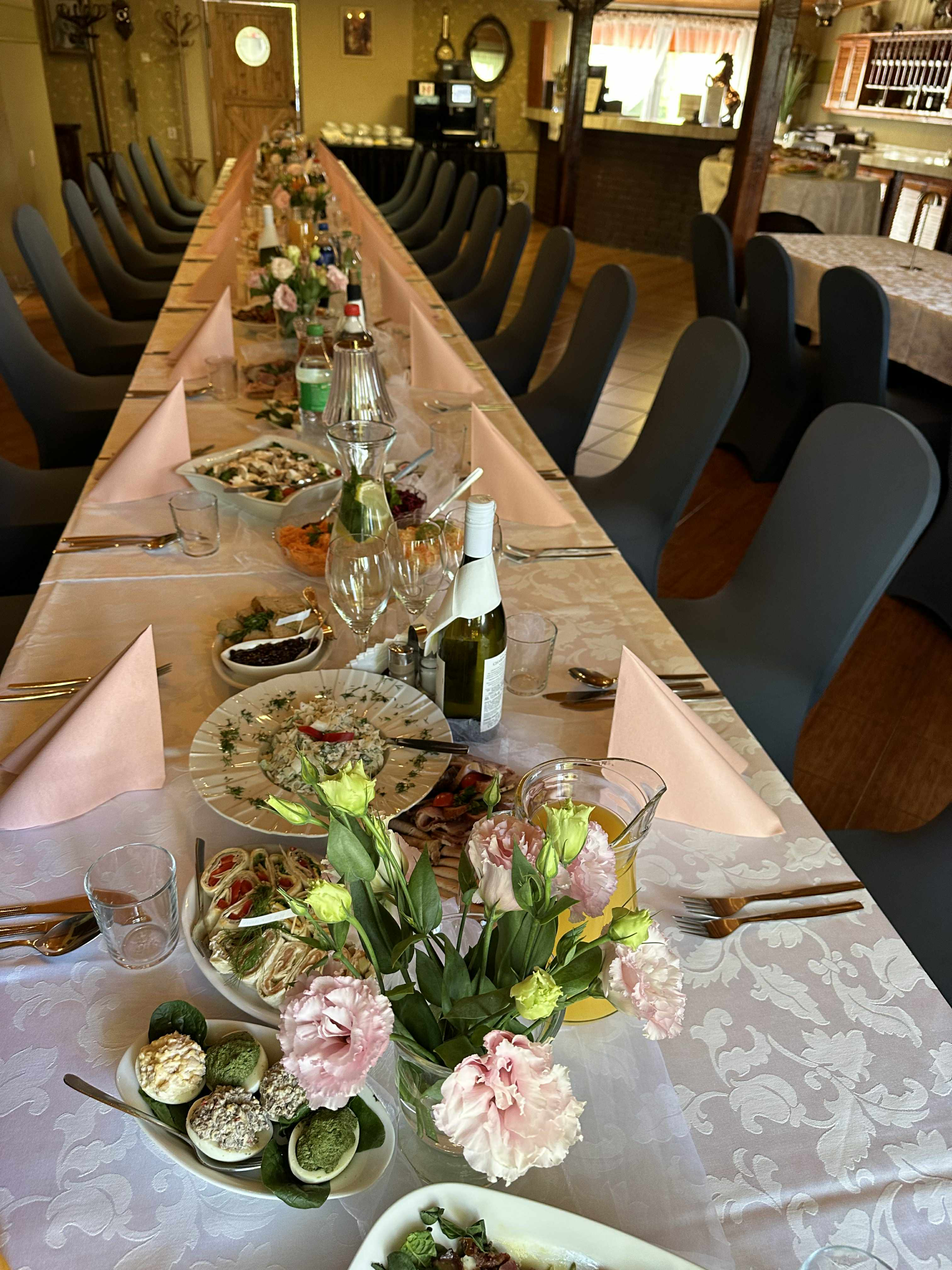Planujesz wyjątkowe wydarzenie? Nasza restauracja to idealne miejsce na organizację przyjęć okolicznościowych w eleganckim, a zarazem przytulnym wnętrzu, z wyśmienitą kuchnią i profesjonalną obsługą.